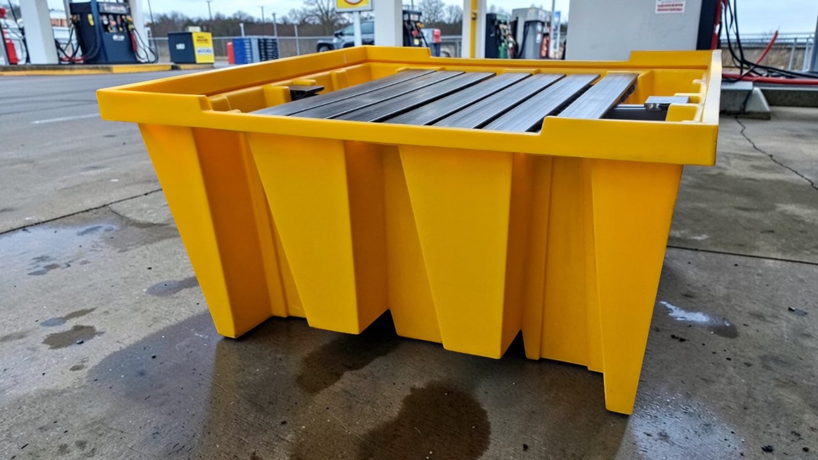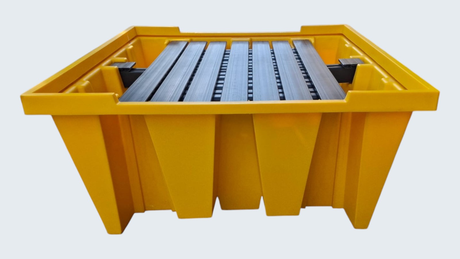 Batea Antiderrame Embonable, diseñado para cumplir con las normas vigentes para el almacenamiento seguro de un tanque IBC de 1.000 litros. Posee una rejilla plástica extraíble, que permite un vaciado y limpieza rápida. La batea de contención NO posee tapón de drenaje para asegurar el estanco del producto. Fabricado en Polietileno 100% virgen mediante el sistema de rotomoldeo, resistente a hidrocarburos, productos químicos y agentes corrosivos. Su estructura cuenta con un sistema de nervios y refuerzos que incrementa la capacidad de carga y minimiza riesgos de fractura. Dispone de 2 entradas para uñas de autoelevador que facilitan su manipulación. Cuenta con un diseño embonable para reducir espacios y costos de transporte.