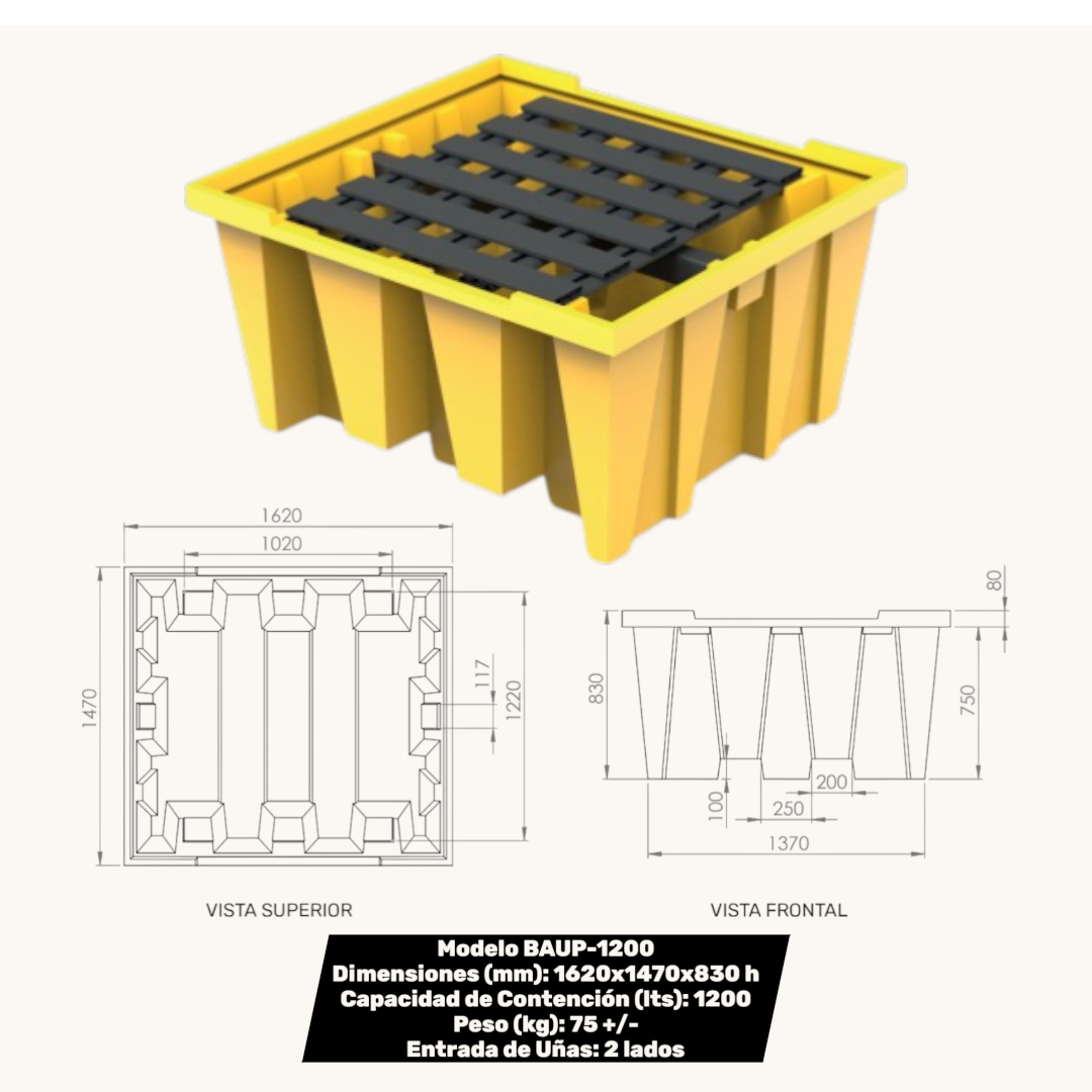 Esta batea antiderrame está diseñada especialmente para el almacenamiento de 1 tambor de 200lts